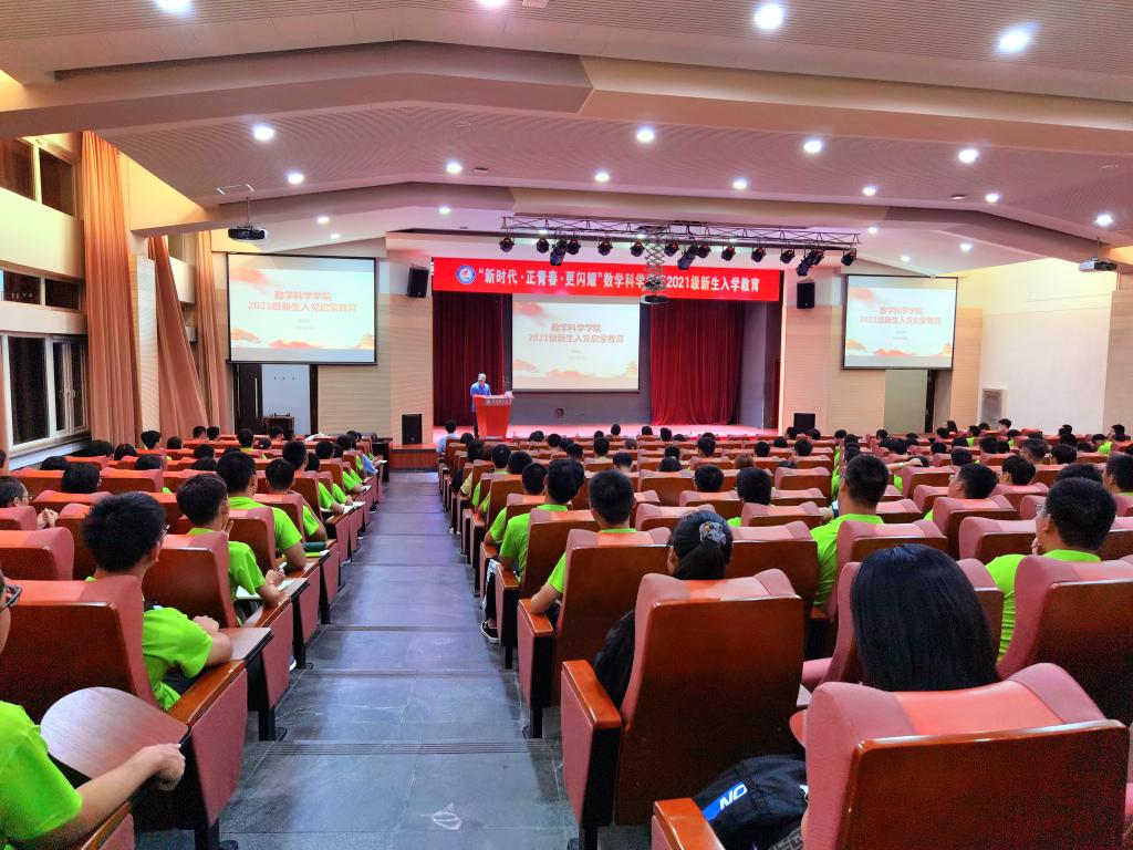 数学科学学院党委高度重视新生入党启蒙教育工作,为切实帮助新生端正入党动机,激发其入党热情,引导学生在大学期间树立远大理想、学好科学知识、勇担时代责任,9月16日,数学科学学院2021级新生入党启蒙教育专题讲座在西部校区百川报告厅顺利召开。本次讲座分别由数学科学学院党委书记刘西民、副书记兼纪委书记高兰主讲。