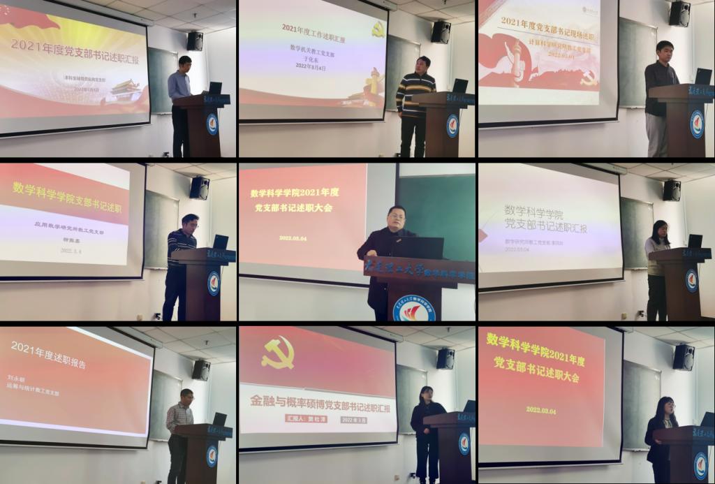 根据我校《2021年度基层党支部书记抓党建工作述职评议考核实施方案》的要求,学院党委采用书面述职和现场述职相结合的形式,全体师生党支部书记均向学院党委进行书面述职,同时安排5个教工党支部、本科生辅导员纵向党支部和金融与概率硕博党支部共7个党支部书记进行现场述职,2年完成了学院16个党支部现场述职全覆盖。各支部书记围绕支部党建工作、特色做法、存在问题和改进思路举措等进行了汇报。