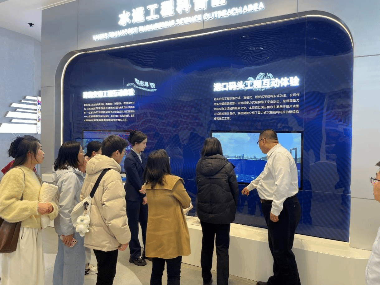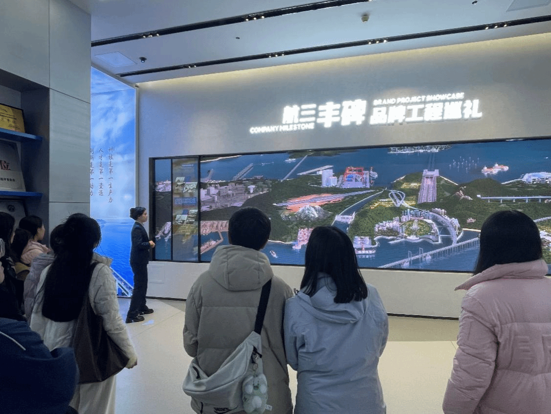 中交一航局三公司的党委工作部部长、企业文化部经理吴昊及党委工作部副部长、企业文化部副经理王琦热情接待了运筹控制与统计金融师生纵向党支部书记吴佳、应用数学研究所教工党支部副书记禹芳带队的一行党员。他们先后参观了该公司参与建设的一系列国家标志性工程,如秦皇岛港口扩建工程、马耳他国际合作项目、沈大高速公路改扩建工程等等,通过详实的图文资料和影像记录,近距离体会到广大一线工人的辛勤付出和坚韧不拔的精神风貌,深切感受到了航三工匠精神的时代内涵。