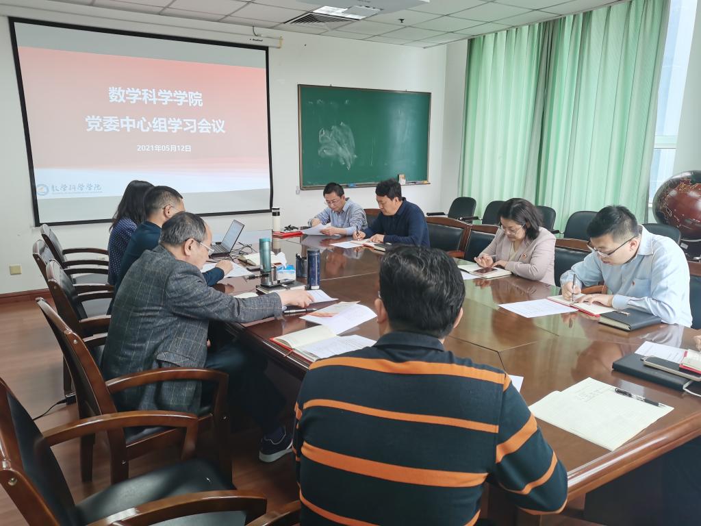 为扎实推进党史学习教育,贯彻落实《中共大连理工大学委员会关于深入学习贯彻习近平总书记在清华大学考察重要讲话精神的通知》等文件要求,5月12日上午,数学科学学院党委在海山楼B1212会议室召开了五月党委理论学习中心组(扩大)学习会议。学校党史学习教育督导组成员、张大煜学院党委组织员徐迎华到会进行督导。