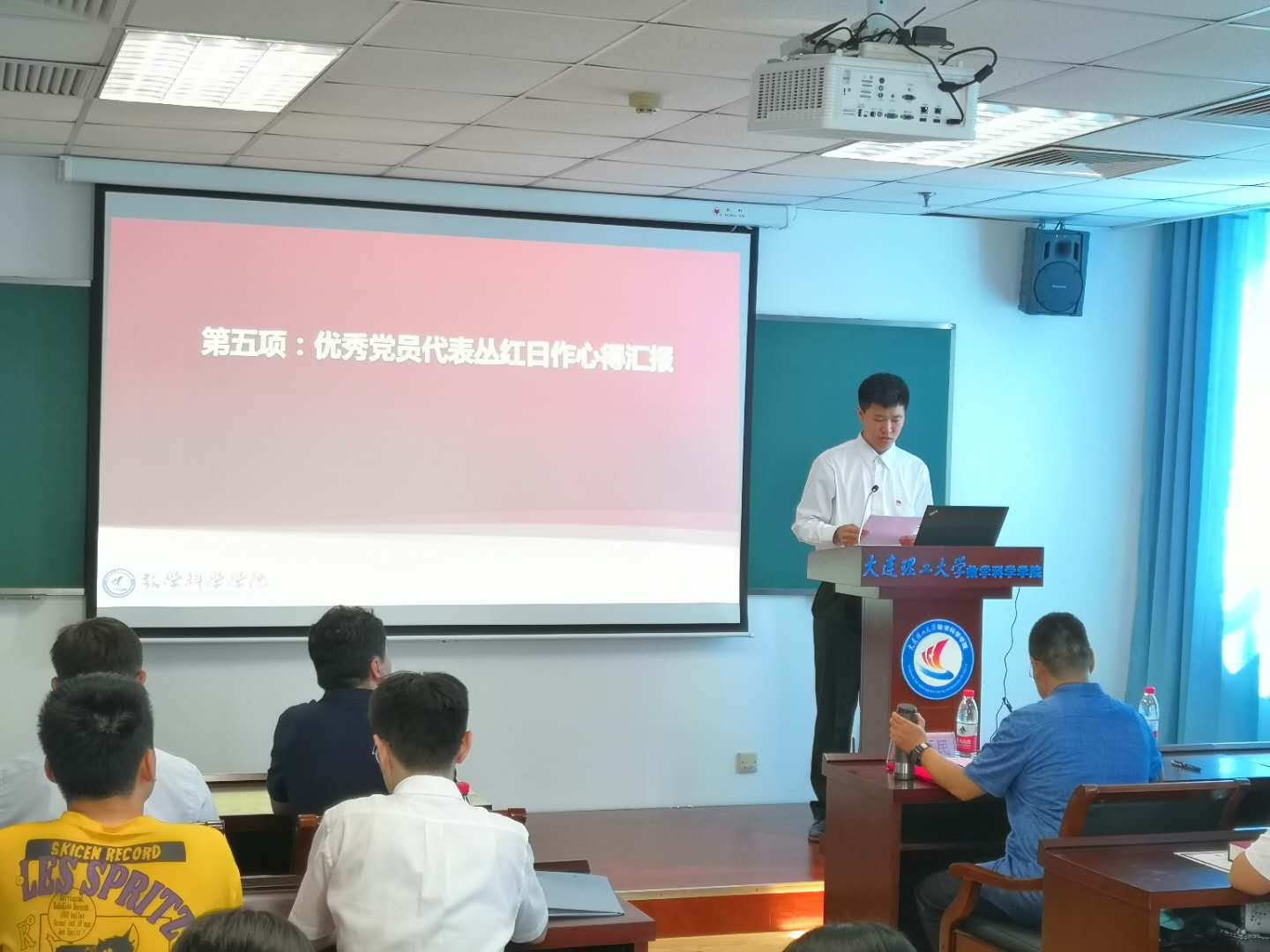 然后,优秀党员代表丛红日做了自己的心得汇报。他回忆了第一次递交入党申请书的时候,那时候他将入党当做一份信仰,也是这份信仰一直驱使着他不断努力,提高自己。丛红日认为作为一名党员必须要有明确的入党动机,不仅仅是成绩优秀就能成为一名党员,只有端正的学习动机才能做到思想上入党。