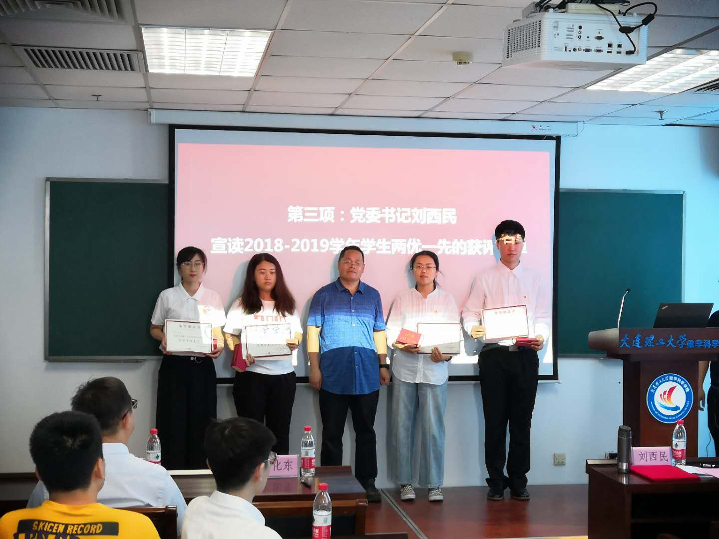 之后,党委书记刘西民宣读了2018-2019学年学生两优一先的获奖名单,并与党委委员、副院长王磊为获评集体和党员颁奖。