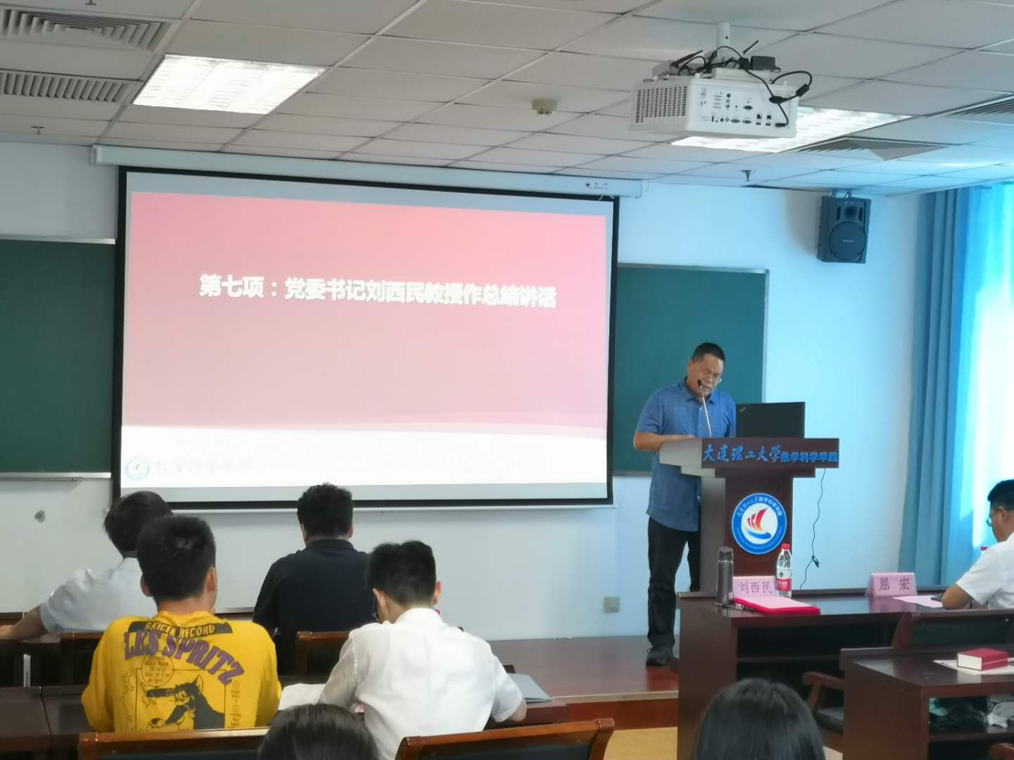 上午8点半,大会正式开幕。数学科学学院党委副书记兼副院长、纪委书记于化东副编审主持会议。党委书记刘西民教授,马克思主义学院副院长屈宏副教授,党委委员、副院长王磊副教授以及各教工、学生党支部书记,部分教工党员出席大会。