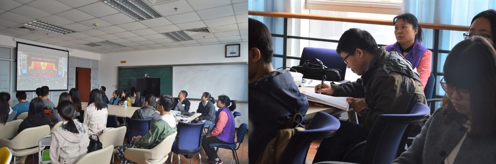 2017年10月18日上午9时,中国共产党第十九次全国代表大会开幕会在人民大会堂隆重举行。学院党委组织校内全体师生党员分别在学院会议室、教研室、学生寝室等地进行了集中收看收听,组织在国外、校外党员利用新媒体自行观看学习,共同喜迎党的十九大胜利召开。