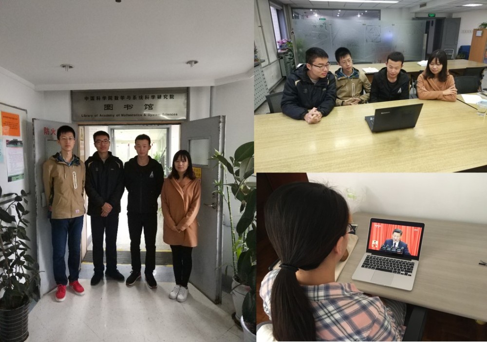 华罗庚班派往中科院数学与系统科学研究院学习的4名本科生党员也进行了集中收看。学院优秀学生党员、现已保送至清华大学的梁栋说:作为新时代的大学生,要做好本职工作,利用好中科院和学院给华罗庚班提供的优越学习环境和学习资源,学好科学文化知识、锤炼科研能力水平、探寻研究方向,秉持大工数学人“厚德求索,励志创新”的精神,不忘初心、牢记使命,力争做出一些有意义,有价值的科研成果。正在新加坡南洋理工大学进行公派留学的研究生党员李冠儒观看后认为:作为一名博士研究生党员,将利用好在国外学习的机会,把握好党和国家给我供的良好学习环境,以愈发饱满的热情投入到工作和生活中去,更好地为国家和社会做贡献。
