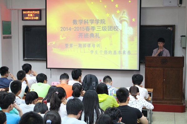 5月26日晚6时,数学科学学院第一期团课培训——学生干部的基本素养于建管312成功举办。为进一步充实广大团员青年的理论素养,不断提升团员的实践能力和综合素质,调动团员青年的积极性,不断提高我院学生骨干、团干部等群体的思想政治素质、政策理论水平、创新能力、实践能力和组织协调能力,为学院的建设发展做出更大贡献,数学科学学院春季三级团校培训班如期开班。出席本次活动的嘉宾有数学科学学院团委书记刘颖老师,数学科学学院团委常务副书记马晨阳、学生会主席刘笑辰、学生会常务副主席兼组织部长张逸飞。