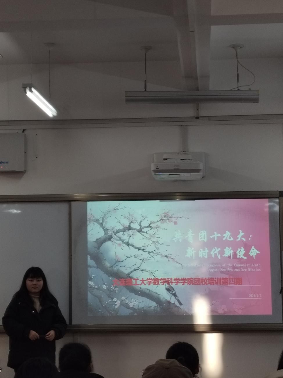 2024年1月3日,数学科学学院团委开展了以“学习共青团十九大,肩负新时代新使命”为主题的第四期秋季团校。此次团校培训在研教楼A206举行,培训由基础数学第一团支部的团支书冯倩主持,基础数学第一团支部全员参与此次培训。
