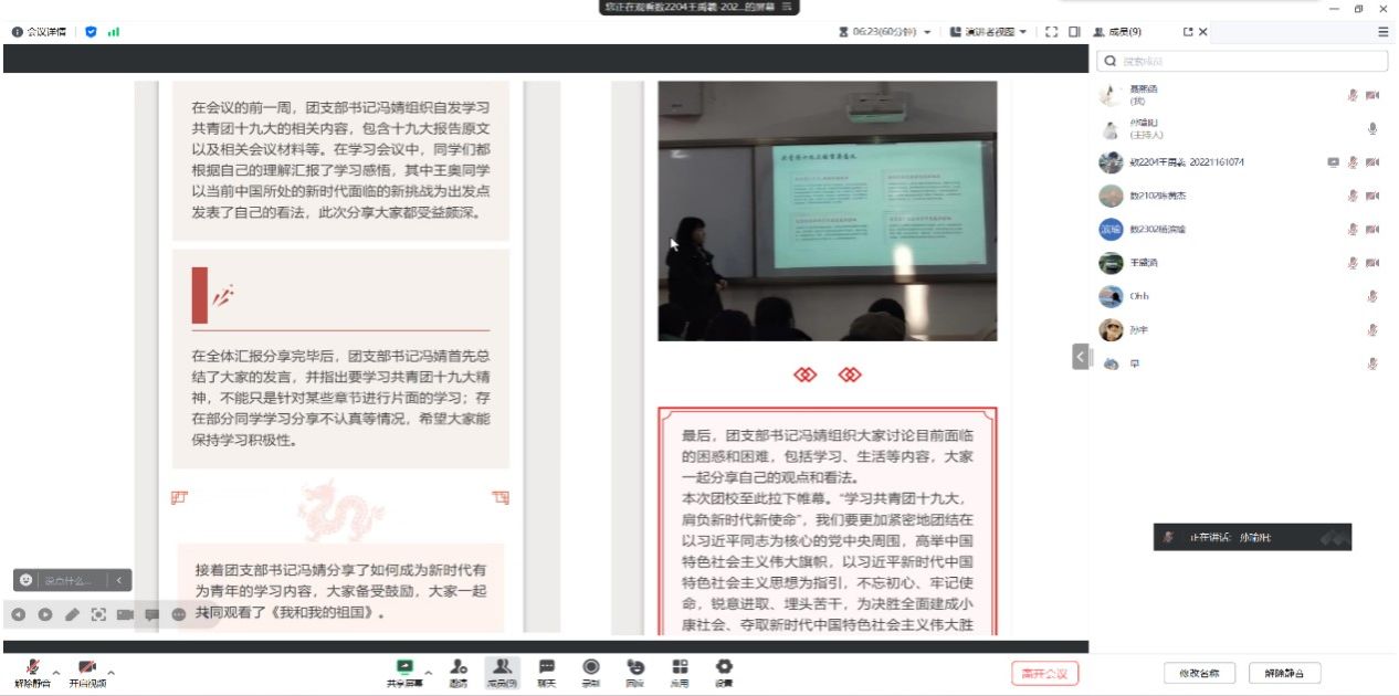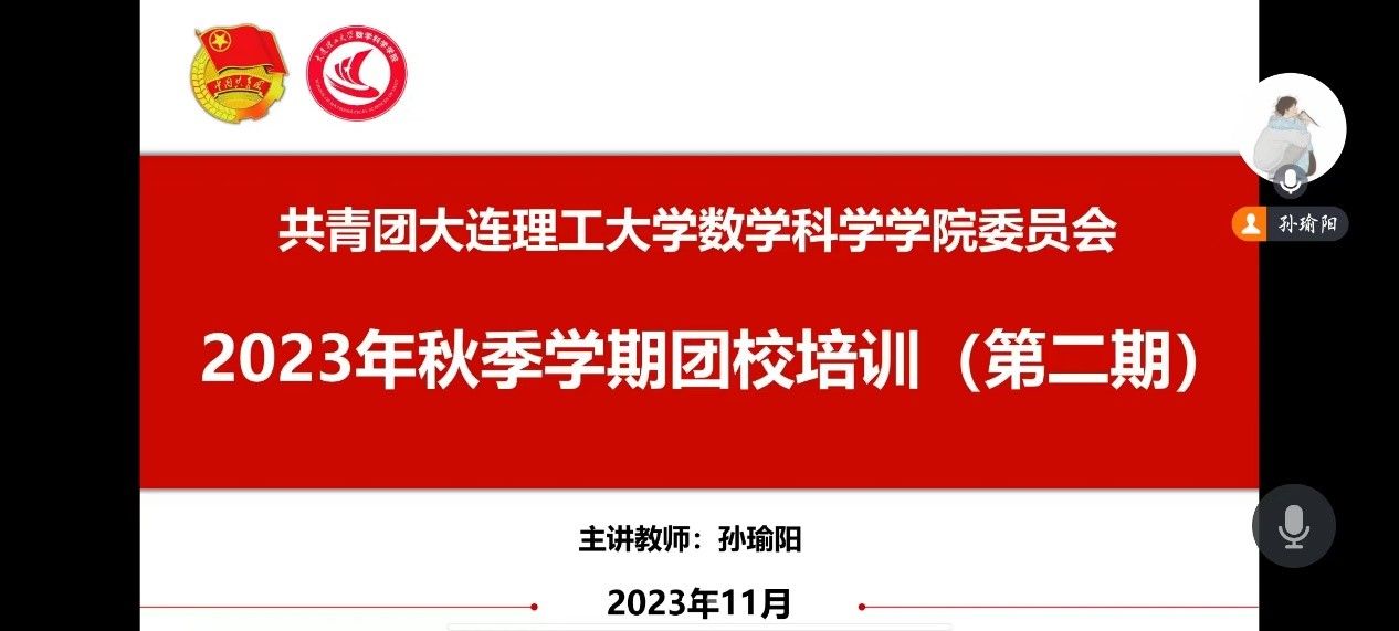 2023年11月15日晚上18:00,大连理工大学数学科学学院基层分团校第二期培训在线上以腾讯会议的形式顺利开展。学院团委常务副书记洪鼎主持培训,各部门负责推送制作的同学以及一些基层团员同学参加培训。