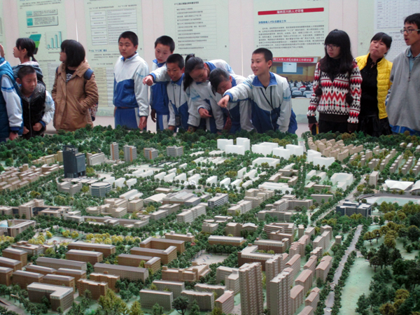志愿者们先带领小朋友们参观校史馆,在校史馆中,解说员为孩子们声情并茂地介绍了大工的历史,讲述了屈伯川院长、钱令希院长的事迹,并介绍了整个大工的版图。