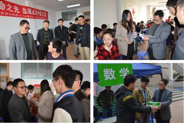学院志愿者于七点半就来到了大服楼,搭建登记处,协助进行登记,同时为献血学生发放学院精心准备的慰问品,并为他们提供细致周到的服务。在献血过程中,数学科学学院党委书记刘西民教授、学生工作办公室全体老师共同来到现场看望参与献血的同学们,并为他们发放慰问品。老师们对同学们亲切慰问,叮嘱同学们注意个人的身体状况,要注意休息和饮食。