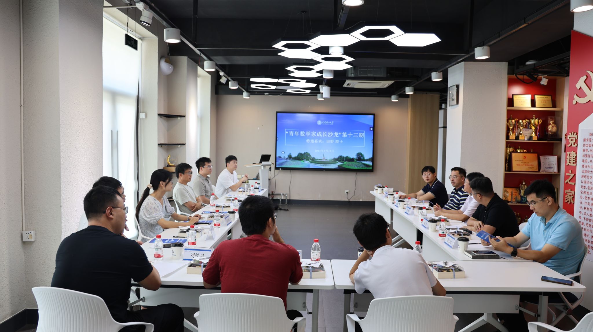 9月12日,数学科学学院党委举办第十三期“青年数学家成长沙龙”。中国科学院院士、中国科学院数学与系统科学研究院田野研究员作为特邀嘉宾参加了本次沙龙。学院党委书记崔强、院长柳振鑫和青年教师共15人参加了本次活动。