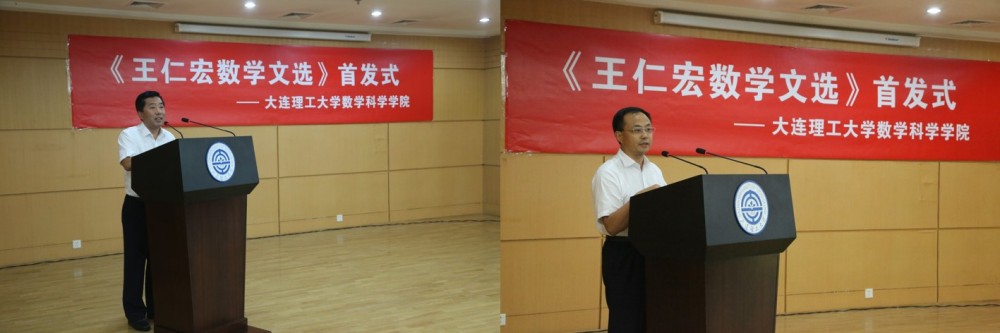 8月3日上午,以我国知名数学家、我校数学科学学院王仁宏教授从教五十余年的研究成果结集出版的《王仁宏数学文选》在伯川图书馆多功能厅举行了隆重且简洁的首发式。大连理工大学校长郭东明院士、校长助理罗钟铉教授、复旦大学吴宗敏教授、中国科学技术大学陈发来教授、美国加州大学尔湾分校赵宏凯教授、日本名古屋大学张绍良教授、北京物资学院院长王文举教授及数学科学学院党政班子成员、各研究所领导、教师代表和王仁宏教授国内外数十名学生参会。会议由数学科学学院院长卢玉峰教授主持。