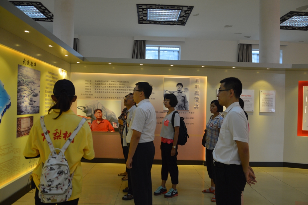 在参观毛丰美事迹陈列馆,一张张图片和一行行文字,记录了毛丰美带领乡亲们三十年如一日,开创了大梨树村今天的大好局面,兑现了“要让村民过上和城里人一样的好日子”的铮铮诺言。