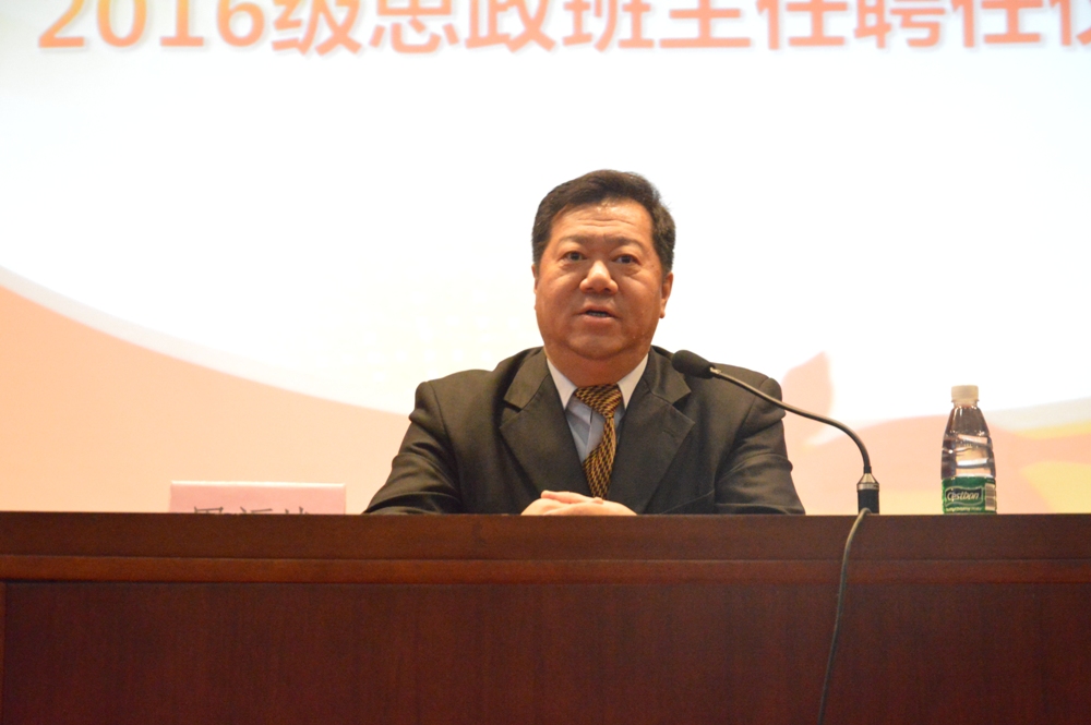 启动会上,学生工作处副处长顾丰宣读了数学科学学院2016级本科生思想政治教育班主任聘任名单。聘任校学生工作处李伟、校党委宣传部陈家晶、周福战、校团委陆凯、马克思主义学院梁大伟、离退休处王昕等六位老师分别担任数1601-1606班思想政治班主任。顾丰副处长和刘西民书记共同为思政班主任颁发聘书。这也是自2015级起,数学学院再次为每个新生班级配齐思政班主任。目前,学院思政班主任共有16位,占学院班级总数的67%。思想政治班主任与第一课堂教师、辅导员、专业班主任、本科生导师和家长等成为大学生日常思想政治教育的主要实施群体。日常思想政治教育与专业教育、家庭教育和第二课堂教育等共同成为学院全程全方位育人的重要一环。辅导员、专业班主任、思政班主任也成为了优良班风学风建设的教师“铁三角”。