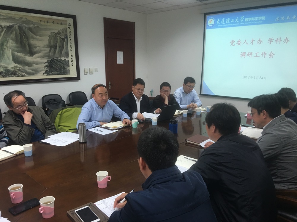 马学虎主任在调研中对数学学院学科建设工作提出了六点建议:一、要积极引进和培育高端人才,如:千人、青千、杰青、优青;二、要进一步加大重点项目的筹划、组织及申报;三、要进一步加大国际学术交流,提升国际联合发表高水平文章数量和层次;四、双一流大学学科建设中也要关注在国内高水平杂志上的文章发表;五、要积极筹划、组织申报国家、省部级科研奖项;六、在保持论文数量增长同时需要兼顾高水平文章数量的增加。