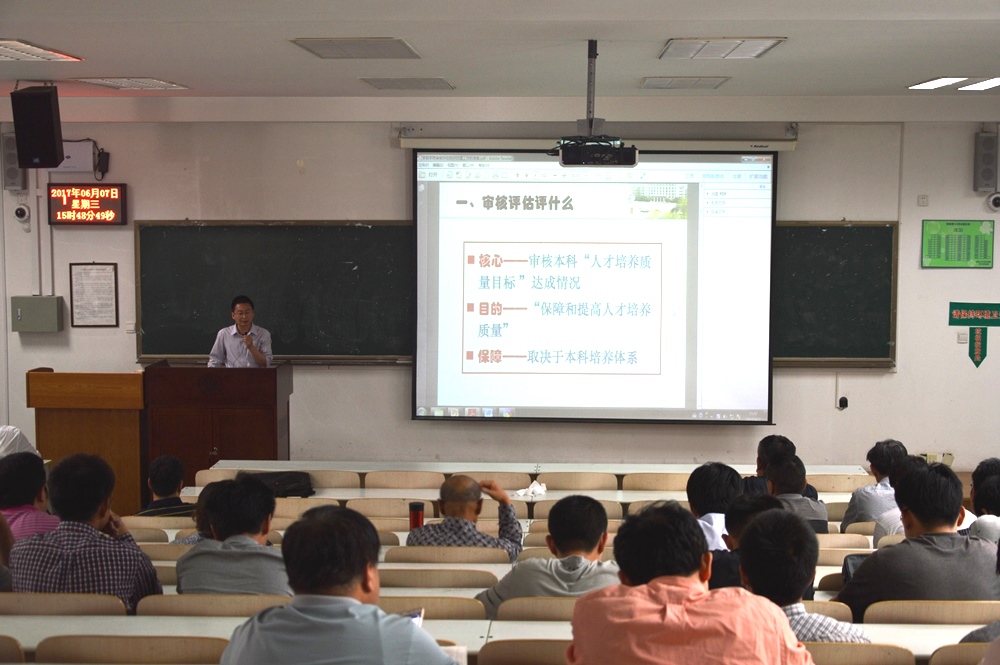 最后,李崇君院长介绍了学校及学院的各项教学管理规定,重申日常教学工作规范化的重要性。要求全院教职工在今后的教学工作中秉承着认真负责的态度,并强调此次准备工作并不仅仅是为了审核评估,更多的是通过自评自建,查找不足,做好规划,不断提高学院本科生教育和学科建设水平,全面落实立德树人,培养又红又专的社会主义合格建设者和可靠接班人。