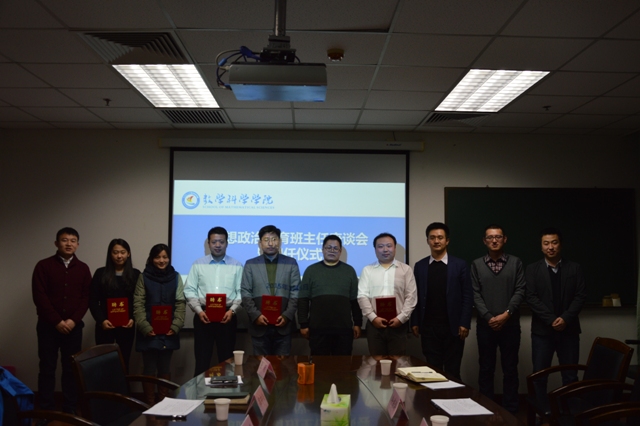 为贯彻落实学校关于思政班主任进班级的工作要求。近日,数学科学学院在创新园大厦1212会议室组织召开了数学科学学院思想政治教育班主任聘任仪式暨座谈会。学院党委书记刘西民、党委副书记兼副院长马吉祥、五位思政班主任和全体辅导员参加了会议。会议由学院党委副书记兼副院长马吉祥主持。