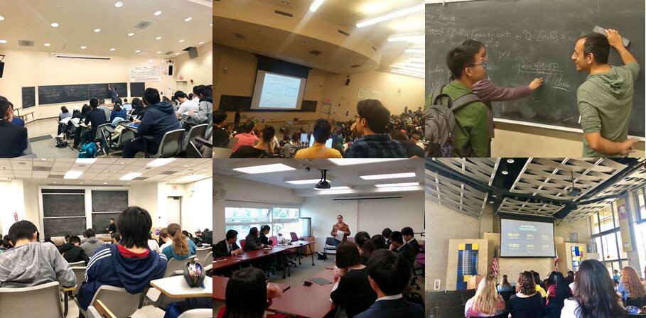 在加州大学圣地亚哥分校,同学们进行了为期三天的深度访学,插入在校本科生班级学习常微分方程、实分析基础、科学工程微积分、线性代数、抽象代数等课程,沉浸体验真实的美式大学课堂。虽然语言不同,但学术无国界,从起初的内敛羞涩,到站上讲台与任课教师探讨数学问题,大工数院学子严谨求实的治学精神令美国教授颇为赞赏。此外,访学团成员还参加了校方主办的硕博申请指导会,并与加州大学圣地亚哥分校数学系的师生进行学术交流和座谈,了解美国名校申请的政策要求,明确个人努力方向。