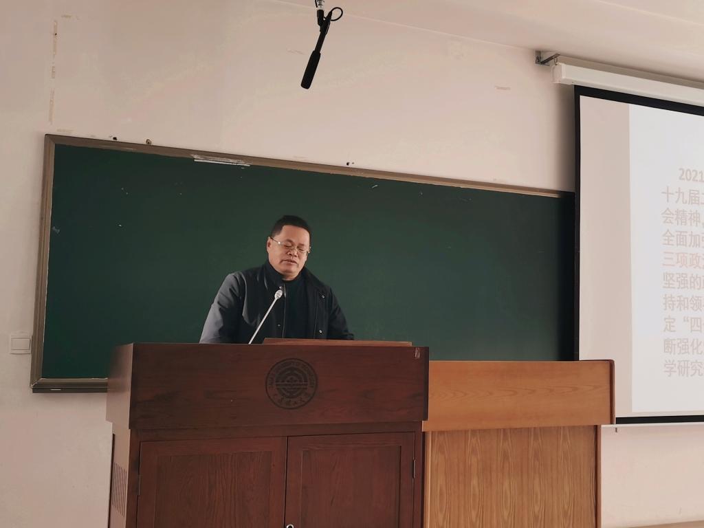 学院党委书记刘西民代表党委班子围绕贯彻落实习近平新时代中国特色社会主义思想、履行全面从严治党主体责任、两个议事规则执行情况、学院党建工作等多个方面汇报了学院2021年党委工作及取得的成绩;学院院长雷逢春代表行政班子从师资队伍建设、科研工作、人才培养、学科建设等多个方面进行了2021年学院工作回顾和总结。与会教职员工在认真听取报告后对学院领导班子进行了民主测评。