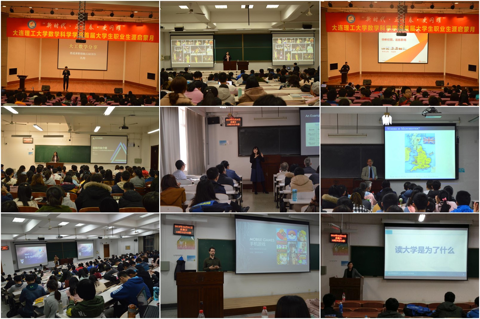 在历时一个月的活动中,学院邀请英国曼彻斯特大学数学学院院长Peter Duck、华为北研院人力资源经理冯正轩、北美精算协会会员赵昕、东软集团人力资源部副部长潘月、国泰君安证券大连营业部总经理白茜、博乐科技产品副总裁Eran Navot等十余位嘉宾就数学专业本科毕业相关的学术科研、数据统计、人工智能、软件开发、程序设计、保险精算、证券金融等多个就职领域进行普及式宣讲,邀请我校招生就业处就业指导科科长王琳和思成求职CEO孔翔结合他们丰富的一线指导经验和大量鲜活案例对大学生生涯规划进行启蒙式教育。