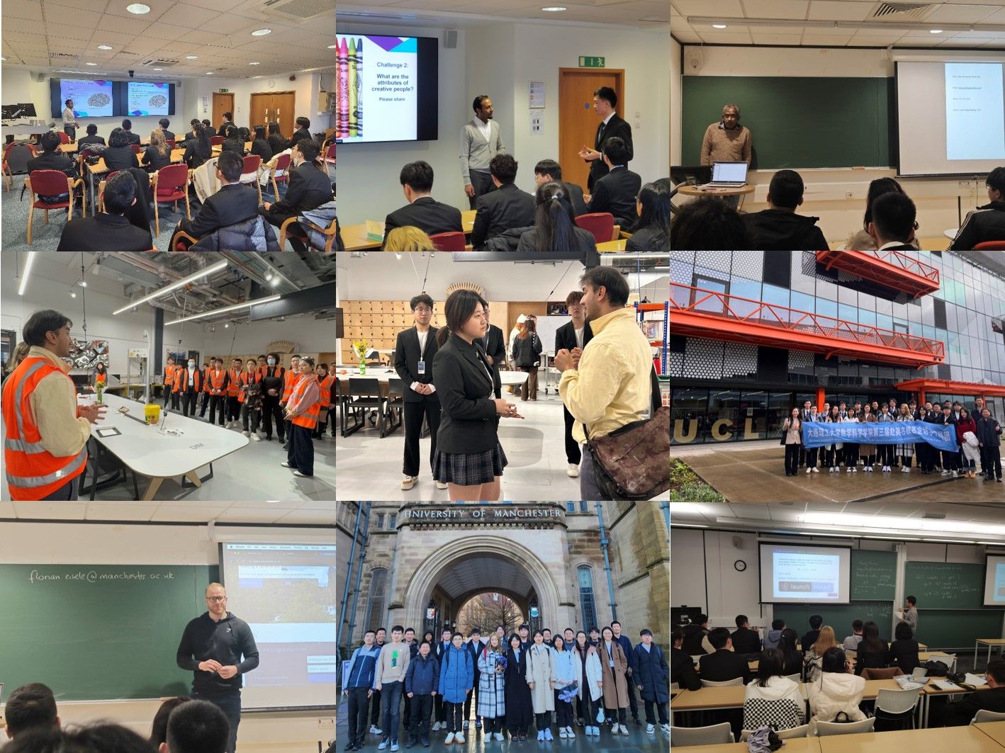 两支赴英国访学实践团行程各异,相继在帝国理工学院、伦敦大学学院和曼彻斯特大学进行访问学习,并参访了牛津大学、剑桥大学和伦敦政治经济学院等世界名校。在帝国理工学院,希拉勒·艾哈迈德博士为同学们讲授了一堂互动性极强的AI科普课,让同学们感受了翻转教学模式,同时也学习到如何在数学的学习中培养创造性思维。在伦敦大学学院,同学们参观了数字制造实验室,了解其在智能制造、3D打印等最新进展,以及数学在交叉领域的应用。在曼彻斯特大学,数学学院的吉泰什·加贾尔教授和彼得·福斯特教授对同学们的到来表示欢迎,并介绍了曼彻斯特大学的联合培养计划;随后,三位专业教师为同学们介绍了数学学院本科到研究生各个阶段的学习任务以及培养方案;皮特·乔纳森和保罗·约翰逊博士为同学们分享了金融数学的知识与应用,以及如何建立模型和算法降低投资风险。最后,来自曼彻斯特大学的在读本科生和我院在曼大攻读博士学位的院友与同学们交流分享,为大家传经送宝。