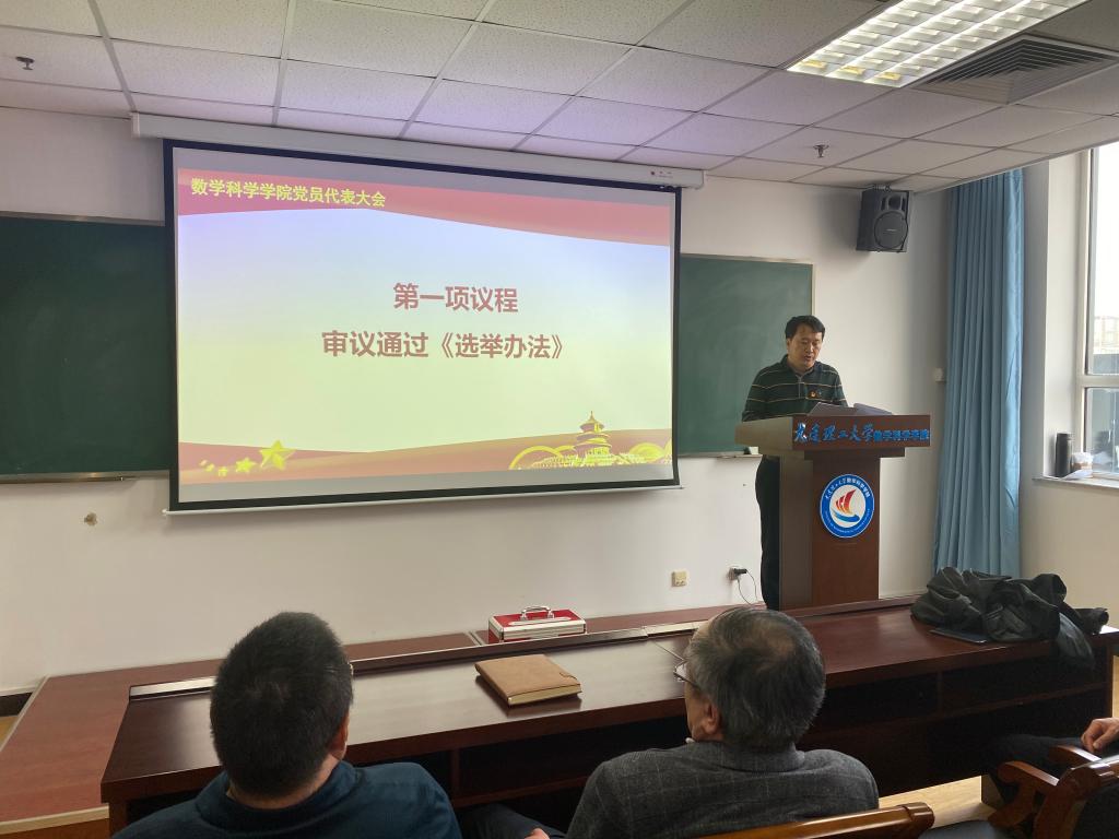 中国共产党大连理工大学第十四次代表大会将于2020年12月召开,遵照代表大会筹备程序安排,经学校党委批准,11月11日下午,数学科学学院党委在创新园大厦14楼会议室召开学院党员代表大会,选举产生出席学校第十四次代表大会的代表候选人。学院教工党员、学生党员代表共计58人参加会议,符合代表大会规定人数。大会由学院党委副书记兼副院长、纪委书记于化东主持。