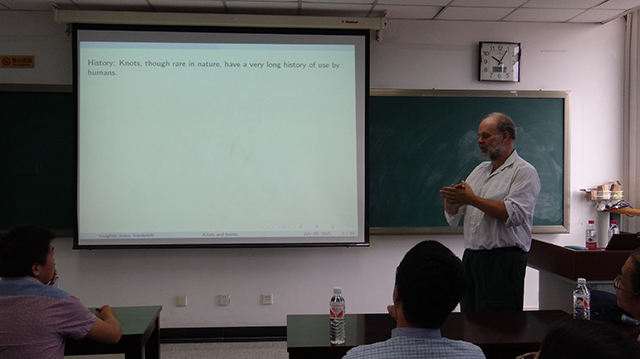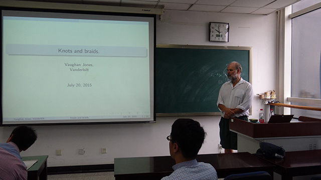 7月17日至22日,在学校外事处大力支持下,应数学科学学院卢玉峰教授的泛函分析团队的邀请,美国范德瓦尔登(Vanderbilt)大学,国际菲尔兹奖获得者Vaughan Jones教授对大连理工大学数学科学学院进行学术访问,并为广大师生带来了系列报告。Vaughan Jones教授的研究兴趣始于泛函分析中的算子代数,特别是von Neumann代数中的因子理论。于上世纪八十年代开创了子因子理论这一研究领域,从中获得Jones多项式。这类多项式被用于对扭结进行分类,解决了低维拓扑学中几十年的难题,同时子因子理论广泛应用于低维拓扑、群论、遍历理论、量子物理学等领域的研究中,这些领域的相关研究至今仍一直活跃。