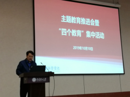 会上,学院书记刘西民详细地从前期筹划、目前进展以及后期计划等三个方面对学院“不忘初心、牢记使命”主题教育开展情况做一汇报。他强调,主题教育开展已近半,全体党员尤其是领导干部不能放松要求,要始终抓牢主题教育的主线继续保持紧迫感,坚持学习教育、调查研究、检视问题、整改落实一体推进,把主题教育与推动学院事业统一起来,统筹推进。