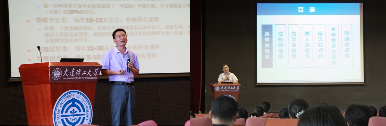 副院长李崇君教授对本科生教育和教学进行了介绍,学院党委副书记、副院长孙壮老师以大学生规则教育为主题,从身体规则、住校规则、为学规则、做人规则、信念规则、生存发展规则和沟通规则等七个方面,就本科生教育管理相关内容进行了专题报告。
