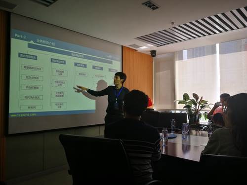 紧接着,大家聚集到会议室,经理通过宣传片的形式向大家展示了公司的发展历史、目前研究的主要方向以及将来要着重发展的方向,讲述了信风公司在激烈的市场竞争中不断壮大,成功走过20载岁月的艰辛历程。