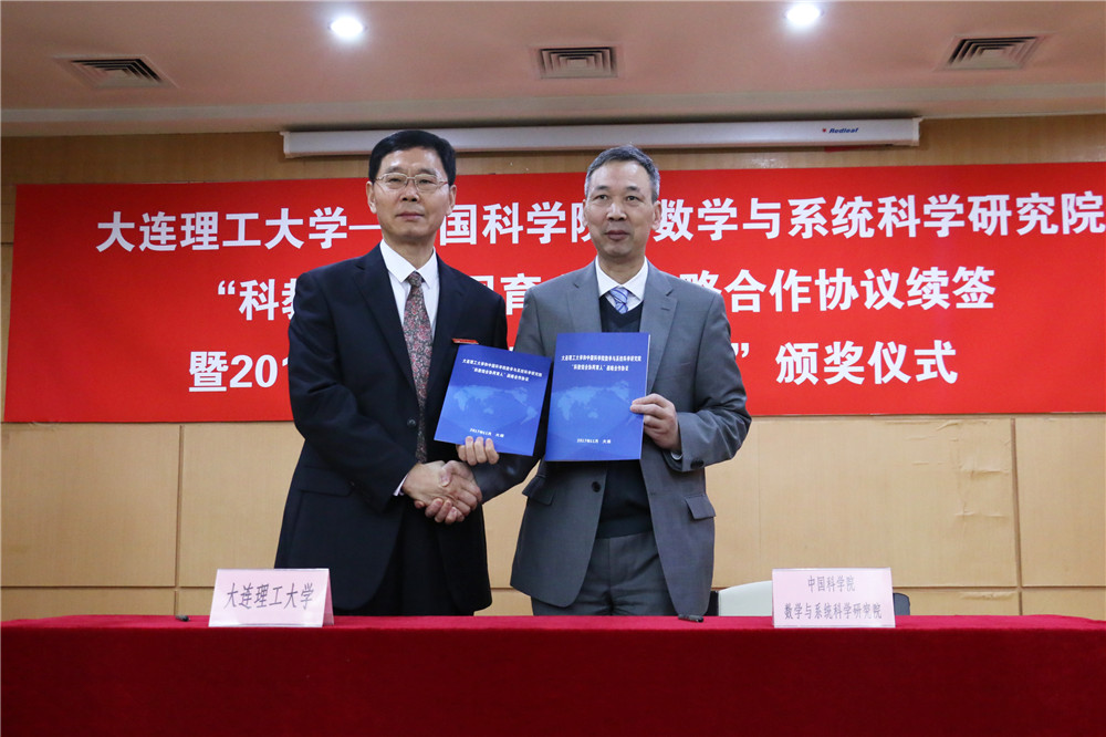 11月16日,大连理工大学-中国科学院数学与系统科学研究院“科教结合协同育人”战略合作协议续签暨2017年“华罗庚奖学金”颁奖仪式在图书馆多功能厅举行。中科院数学与系统科学研究院院长席南华院士、校长郭东明院士,华罗庚先生家属、中科院数学与系统科学研究院和我校数学科学学院相关负责人以及“华罗庚班”教师代表和全体学生参加仪式。签约仪式由院长卢玉峰教授主持。