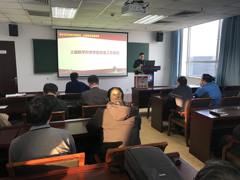 数学科学学院党委书记刘西民代表上一届党委作了工作报告,从履行党建工作职责、基层党建工作情况、意识形态等几个方面全面回顾了上一届党委所做的工作,并对今后的工作做了展望。