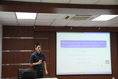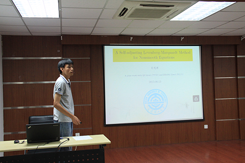 学术报告会分别由雷逢春教授和张立卫教授主持,双方报告人为师生们奉献了6场精彩的学术报告。厦门大学谭忠教授、李安副教授、周达助理教授、王清副教授分别做了题为《Z-pinch内爆等离子体二维三温辐射磁流体动力学方程》、《Necessary optimality conditions for optimal control problems with a geometric constraint》、《肿瘤细胞可塑性的数学模型及其在实验数据中的应用》、《Vertex algebras and infinite dimensional Lie algebras》的学术报告。我院肖现涛副教授、张文龙副教授分别做了题为《A self-adjusting Levenberg-Marquardt method for solving nonsmooth equations》、《快速收敛的π级数》的学术报告。学术报告会取得圆满成功。
