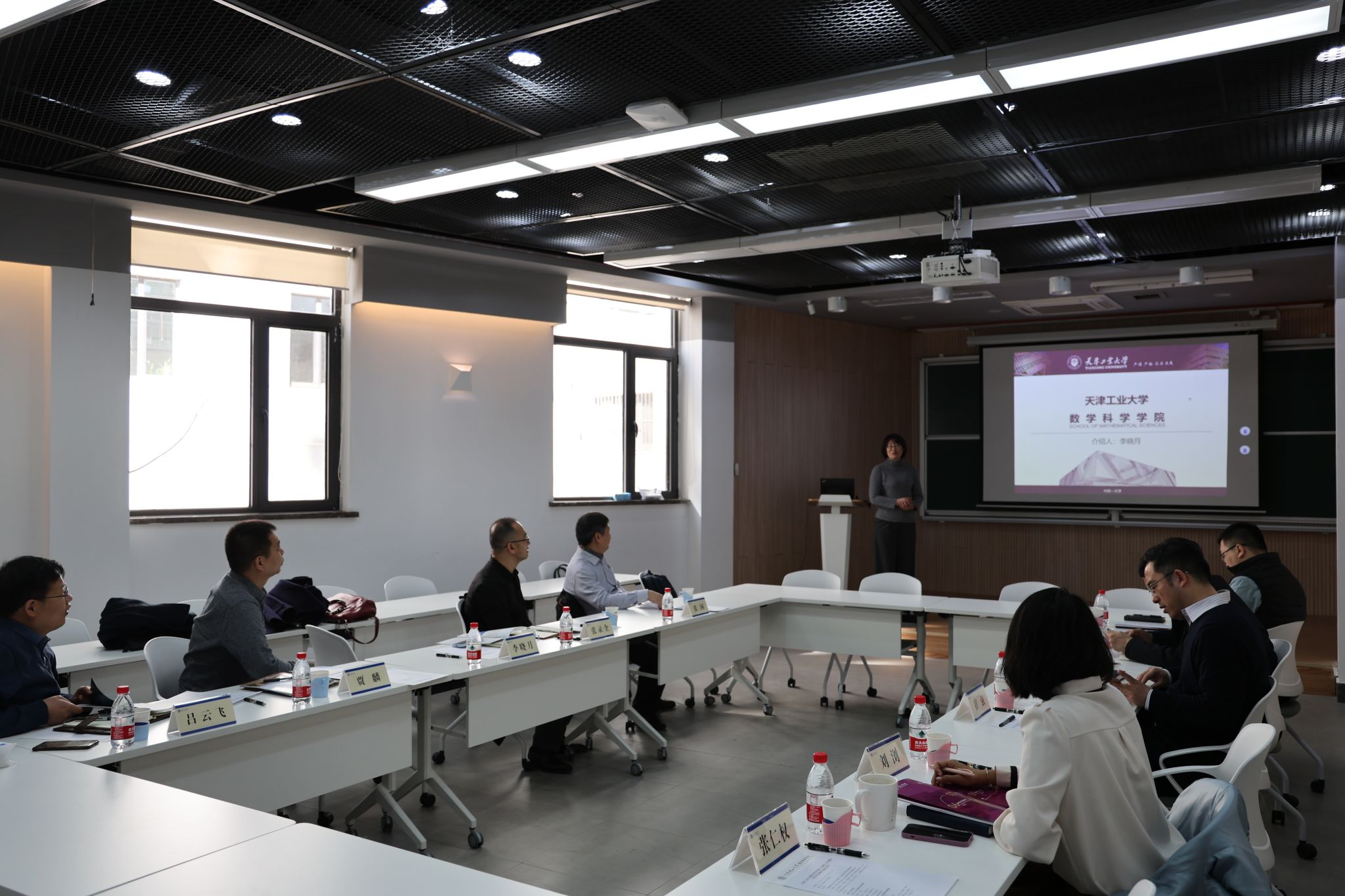 崔强代表数学科学学院欢迎李晓月、张录全一行的到来。柳振鑫介绍了大连理工大学数学科学学院的发展历程、学科概况和学科专业方向等方面的基本情况。李晓月对我院的热情接待表示感谢,并就天津工业大学数学科学学院的发展历程、人才情况和学院未来发展规划等方面做介绍。