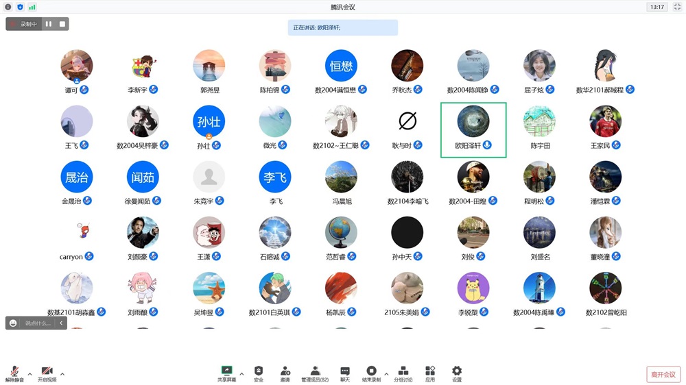 为进一步帮助同学们备战全国大学生数学竞赛(CMC),学院团委科创部联合北京大学数学科学学院英才班,举办了线上经验分享会。北京大学数学科学学院2018级本科生欧阳泽轩、2019级本科生范哲睿和我院2018级本科生乔秋杰、张曦元作为嘉宾,为两院同学分享了备赛经验。北京大学数学科学学院副院长李若教授、北京大学数学科学学院团委副书记李炳萱老师和我院教学秘书程明松副教授与百余名同学一同参加会议。会议于8月9日和11日分两场举行,由学院党委副书记兼副院长孙壮老师主持。