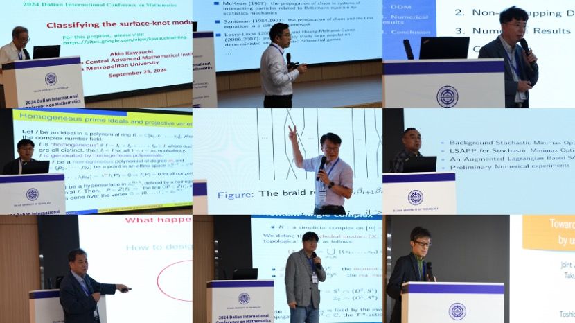 会议期间,日本学士院院士、大阪公立大学Akio Kawauchi教授,韩国数学会前理事长、仁荷大学Yongjin SONG教授,韩国科学与工程院院士、首尔大学教授Seung Yeal Ha教授,韩国科学技术院Chang-Ock Lee教授、Sijong Kwak教授和大连理工大学数学科学学院柳振鑫教授、张立卫教授应邀就数学主流前沿问题作了精彩的大会报告,40余名国内外优秀专家学者结合各自最新研究成果做了分组报告,与会国内外学者和学生围绕有关课题开展了深入交流讨论。