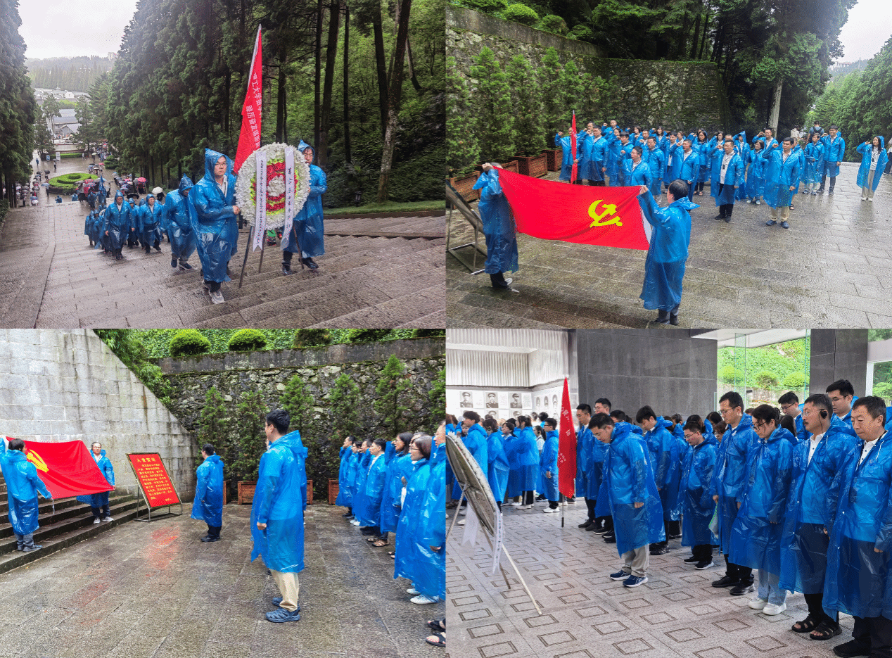 在井冈山革命烈士陵园,学院院长柳振鑫悉心整理花篮缎带,大家冒着大雨、怀着崇敬的心情向烈士英灵敬献花篮,深切缅怀革命先烈。随后,在革命烈士纪念碑前,全体党员面向党旗一起重温入党誓词,在铮铮誓言中坚定入党初心和使命。