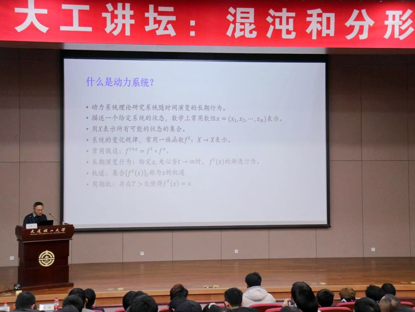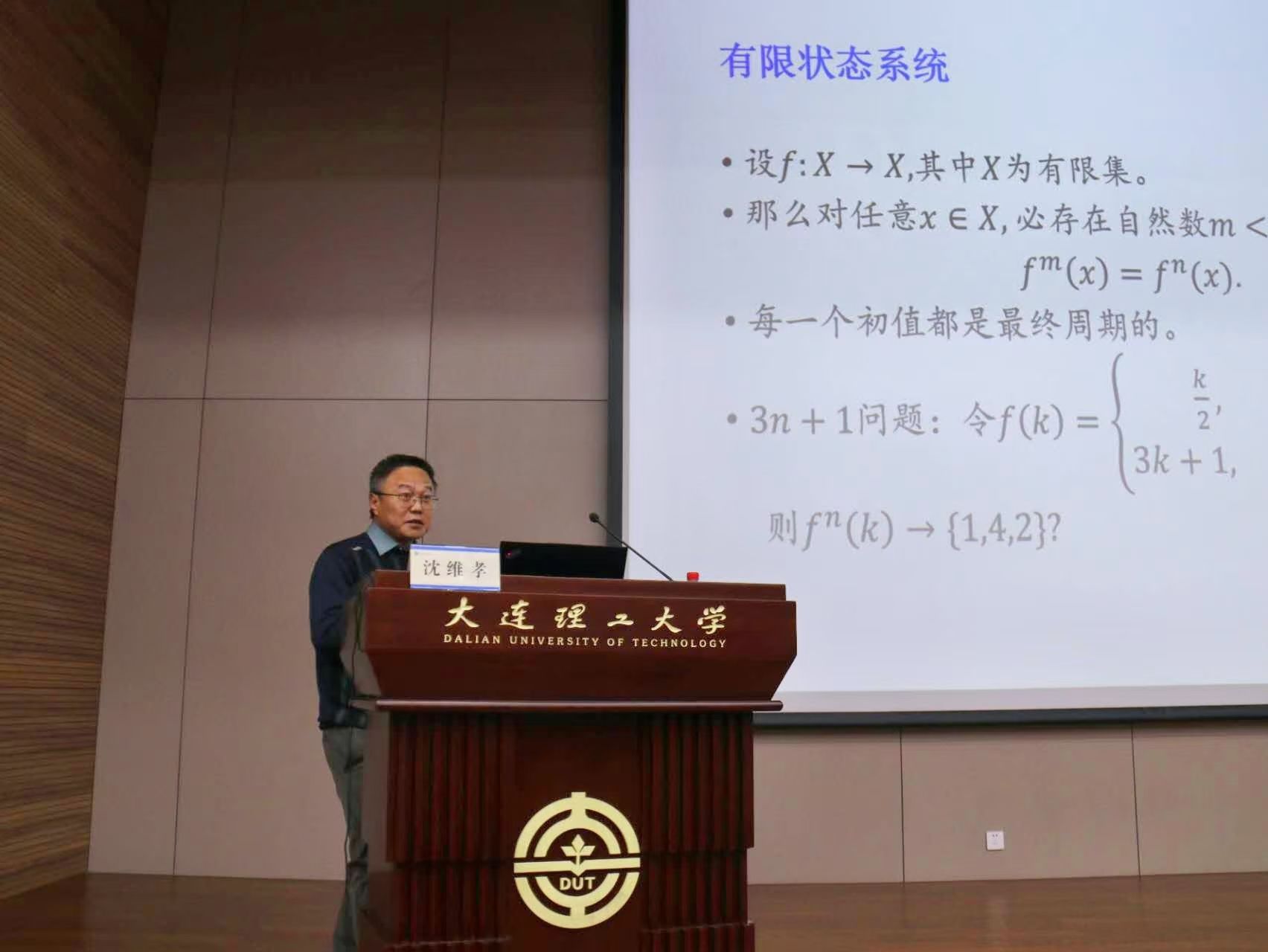 12月15日下午,中国科学院院士、复旦大学教授沈维孝做客“大工讲坛”第146期,以“混沌和分形”为主题给全校师生带来了一场精彩的报告。校党委常委、副校长姚山出席报告会,并向沈维孝院士赠送“大工讲坛”纪念牌。报告会由数学科学学院院长柳振鑫教授主持。