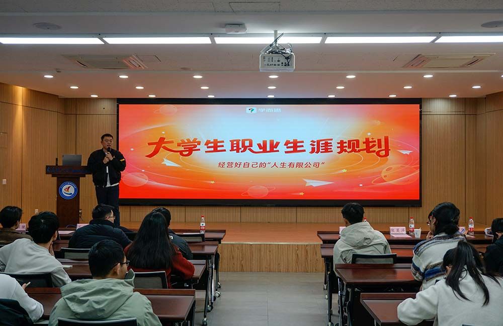 万禹彤老师系统介绍了学院“π动领航——生涯赋能季”系列活动安排,包括企业求职、考公留学、考研保研和生涯规划护航的四大板块,强调以“赋能”为核心,通过各板块下校友引领、名企对接、考研保研指导、187天打卡等多元路径,全方位、多维度助力数学学子锚定方向、砥砺前行。