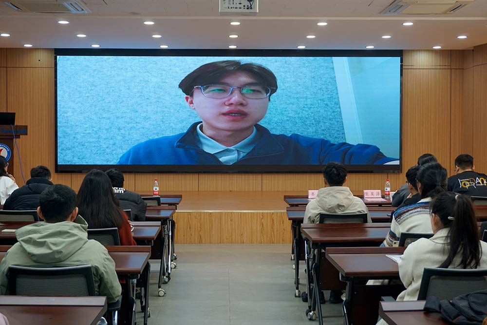 目前就职于浪潮集团有限公司,2020级校友董贵山以“做理想远大的凡人”为题,结合自己本科并不突出的特点,详细分享了自己的就业全过程。首先在求职方面建议同学们要先了解自己和岗位要求,并鼓励多投递,多尝试。接着就如何丰富简历和三类面试如何应对展开分享。最后董师兄建议同学们要终身学习,一定可以找到自己的方向。