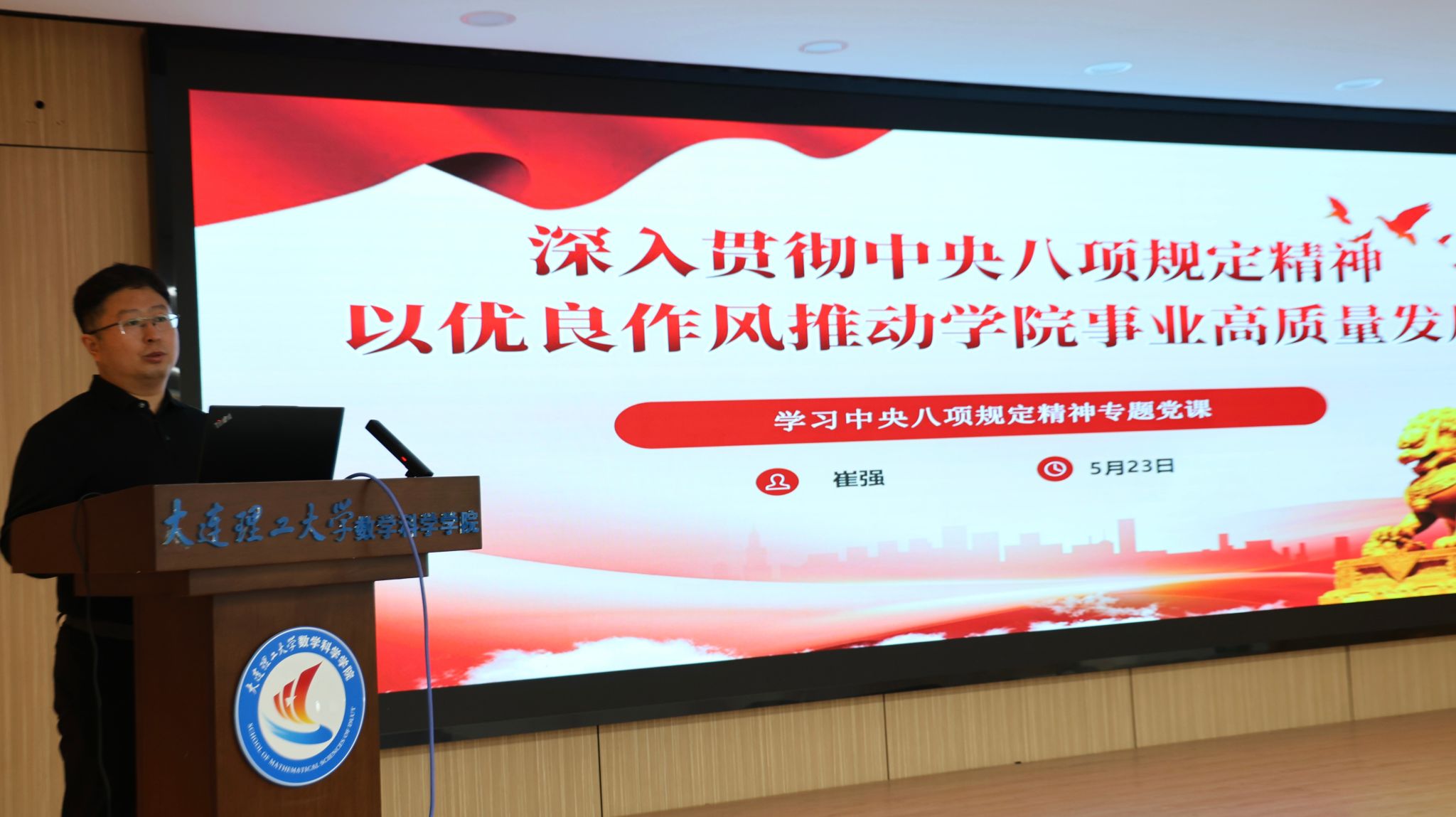 为进一步推动深入贯彻中央八项规定精神学习教育走深走实,深化落实学校“新优势锻造年”、“353工程”决策部署,近日,数学科学学院党委召开了以“锻造优良作风 弘扬奋斗精神 推动学院事业发展加速卓越”为主题的党日活动。机关教工党支部、数学研究所教工党支部和低年级本科生党支部的党员以及2025届毕业生党员共50余人参加了党日活动。学院党委书记崔强出席活动并作专题党课辅导报告,活动由学院党委组织员张静主持。