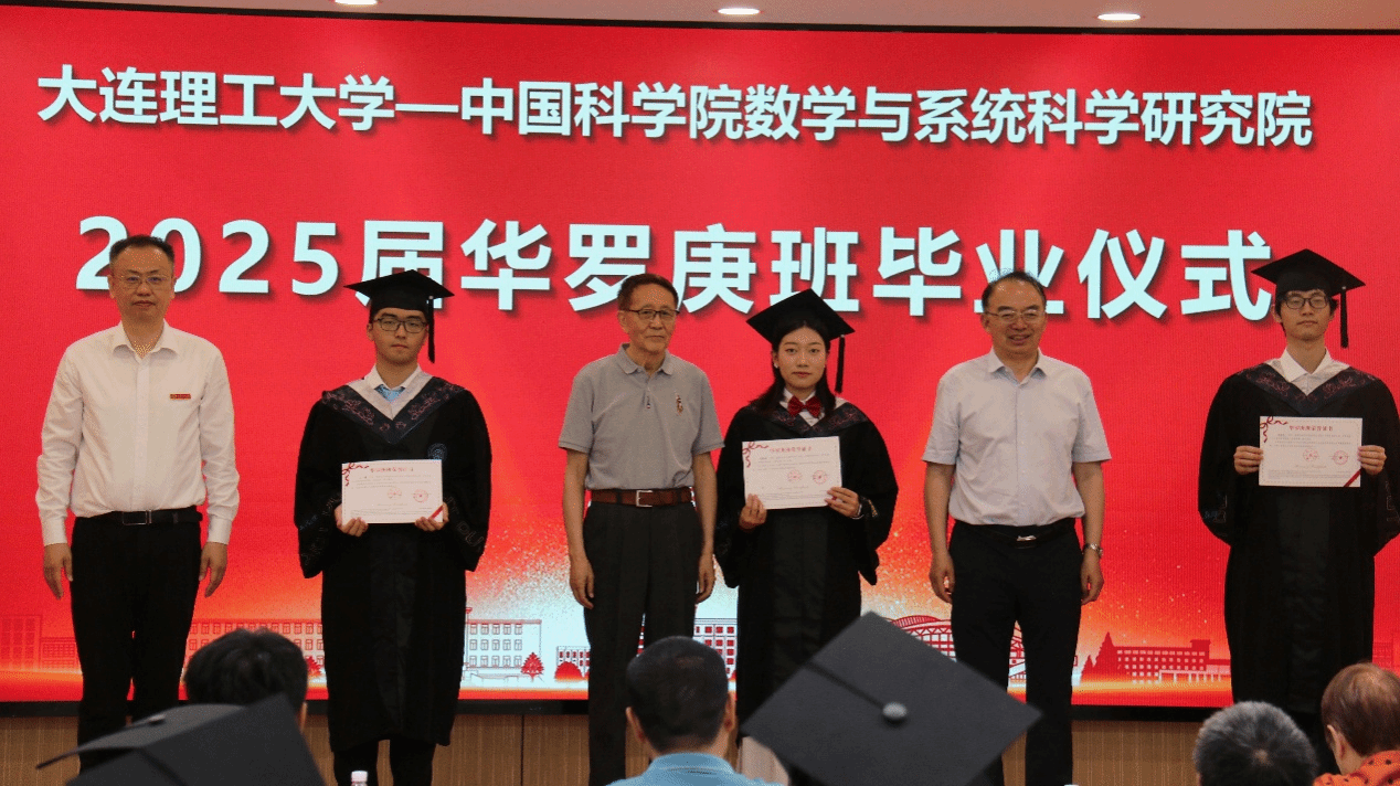 6月11日下午,大连理工大学—中国科学院数学与系统科学研究院2025届华罗庚班毕业仪式在数学楼隆重举行。华罗庚先生家属代表华光、江泳夫妇,中国科学院数学与系统科学研究院副院长戴彧虹、研究生部主任刘霞,大连理工大学党委常委、副校长张弛、教务处处长刘志军、学生工作处处长王一以及数学科学学院党政班子领导、华罗庚班任课教师代表出席毕业仪式。仪式由数学科学学院党委书记崔强主持。