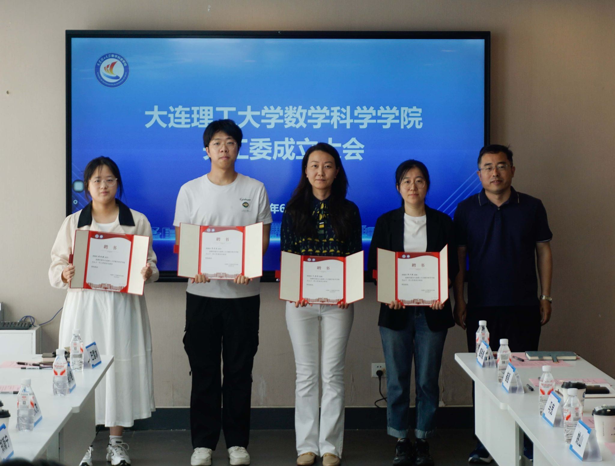 巴雪冰宣读了关于成立数学科学学院关心下一代工作委员会的决定。柳振鑫为关工委委员代表颁发聘书。