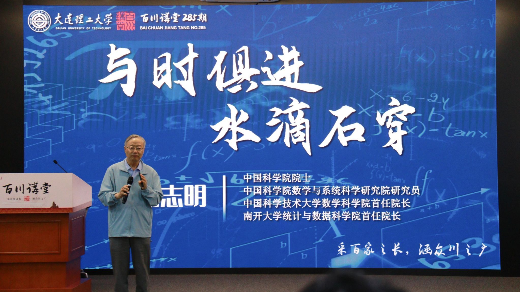 数学为基,智能浪潮涌动,当深耕其公理与模型,方能在新纪元铸就理论突破,实现从追赶到引领的跃迁。7月10日,中国科学院院士、中国科学院数学与系统科学研究院研究员、中国科学技术大学数学科学院首任院长、南开大学统计与数据科学院首任院长马志明院士做客我校“百川讲堂”第285期,带来主题为《与时俱进 水滴石穿》的精彩讲座。我校副校长康旭东教授,校团委、数学科学学院的教师代表,以及本研团支部青年和百川会员共计160余人到场聆听讲座。