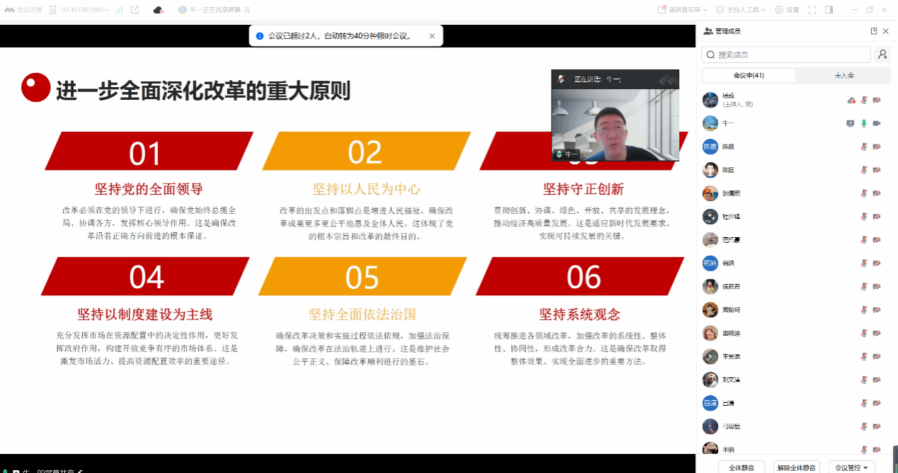 在活动中,牛一导师首先强调了党的二十届三中全会召开的重大意义,它与党的十一届三中全会、党的十八届三中全会并列,是中国改革开放历程中的关键里程碑,为新时代全面深化改革指明了方向。全会召开于中国式现代化全面推进强国建设、民族复兴的关键时期,具有深远的历史意义。它将改革开放与中华民族的前途、中国式现代化的进程以及每个人的命运紧密联系在一起,对于坚持和发展中国特色社会主义、推进国家治理体系和治理能力现代化、实现中华民族伟大复兴的中国梦具有重大意义。全会通过的决策将推动经济高质量发展,深化改革开放,促进社会公平正义,并加强党的建设,确保党始终成为中国式现代化事业的坚强领导核心。