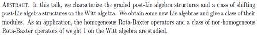 报告题目:Post-Lie algebra structures on the Witt algebra