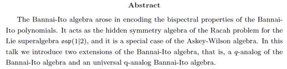 报告题目:Two extensions of the Bannai-Ito algebra