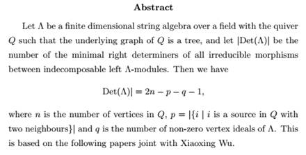 报告题目:Minimal right determiners of irreducible morphisms in string algebras