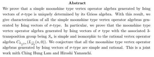报告题目:Vertex operator algebras generated by Ising vectors of $\sigma$-type
