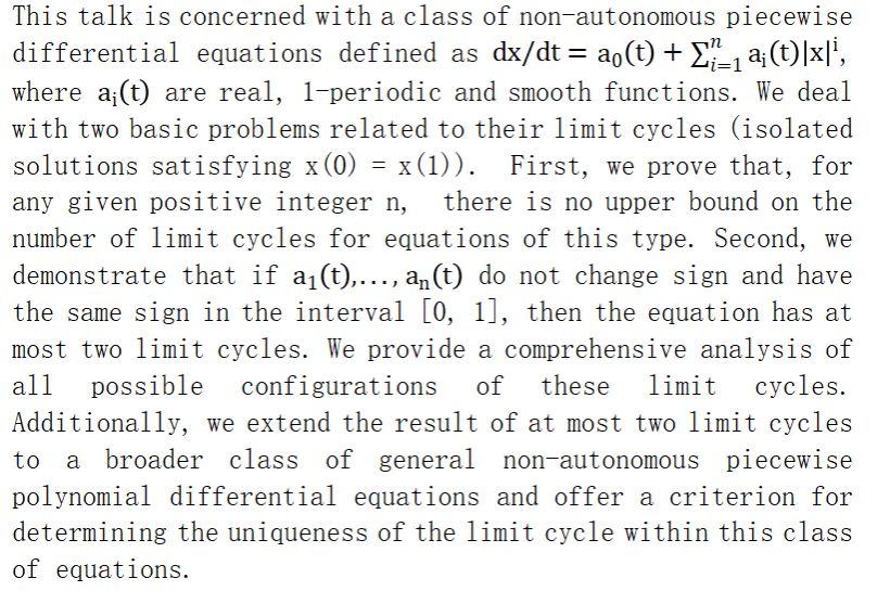 报告题目:The limit cycles for a class of non-autonomous piecewise differential equations